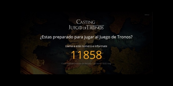 Como podemos ver en la imagen anterior, el 11858 se corresponde con el número de teléfono que publicaba la página web “castingjuegodetronos.com”, un servicio de tarificación especial al que el público llamaría para informarse sobre el casting de la serie.