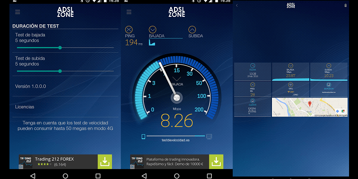 También podemos configurar la duración del test entre 1 y 10 segundos, ofreciendo mayor exactitud si configuramos más tiempo aunque más gasto de datos. En cualquier caso no debemos preocuparnos por el gasto de datos del test de velocidad.