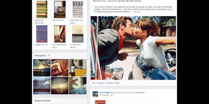 Los perfiles de Facebook, conocidos también como timeline del usuario, se simplifican a dos columnas abandonando la estructura en zigzag. Ahora se divide en actividad a la izquierda e información a la derecha.