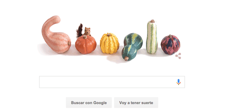 Google ha querido inmortalizar este momento, como suele ser habitual, con un Doodle original dónde una ardilla se esconde tras un grupo de hortalizas, muy típicas de esta época del año y que serán usadas próximamente para hacer esas típicas calabazas de Halloween.