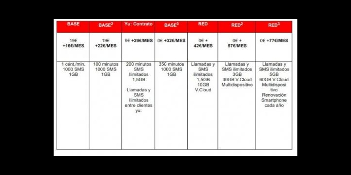 Además de este precio podemos encontrarlo a partir de un coste inicial de 9 euros con otras tarifas como las demás Base, Red y Vodafone Yu, siempre que sea en contrato y con permanencia.