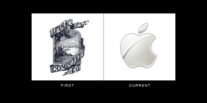 Uno de los más curiosos es de Apple. Su primer logo parecía de otro siglo, aparecía Newton y su manzana, luego se ha ido transformando hasta esta manzana mordida tan moderna.