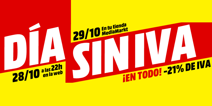 Como adelantado del Black Friday que llegará en pocas semanas, MediaMarkt lanza su día sin IVA por sorpresa, una campaña promocional mediante la cual los clientes podrán adquirir cualquier tipo de artículo sin el porcentaje de IVA correspondiente.