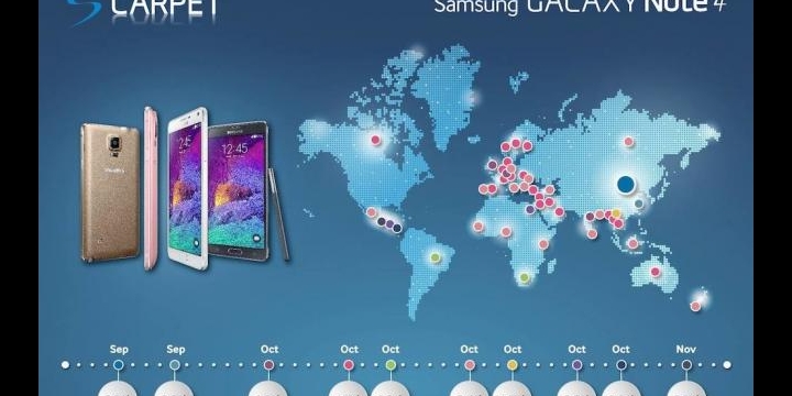 Samsung ha anunciado con una infografía los países en los que estará disponible su nuevo terminal Samsung Galaxy Note 4. El nuevo terminal llegará a España el próximo día 17 de octubre, en apenas dos semanas.