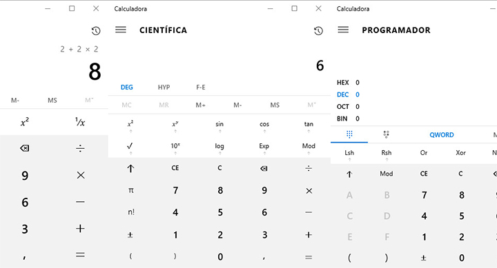 Así que la solución a este error es que nunca utilices el modo estándar de la calculadora de Windows 10 ya que es muy limitado y rudimentario dando resultados erróneos, así que utiliza siempre el modo científico aunque vayas a hacer operaciones tan simples como 2 + 2 * 2.