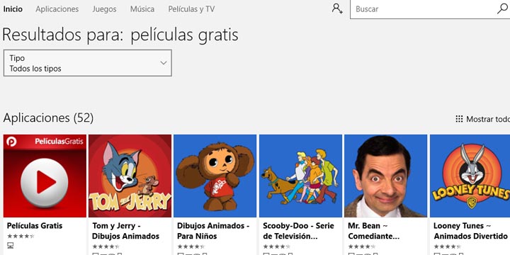 Al comenzar a navegar por las opciones de la Tienda de Aplicaciones de Windows se pueden ver una gran cantidad de apps que ofrecen películas y series gratis, incluso algunos títulos que están en cartelera o que no han llegado a los servicios streaming formales.