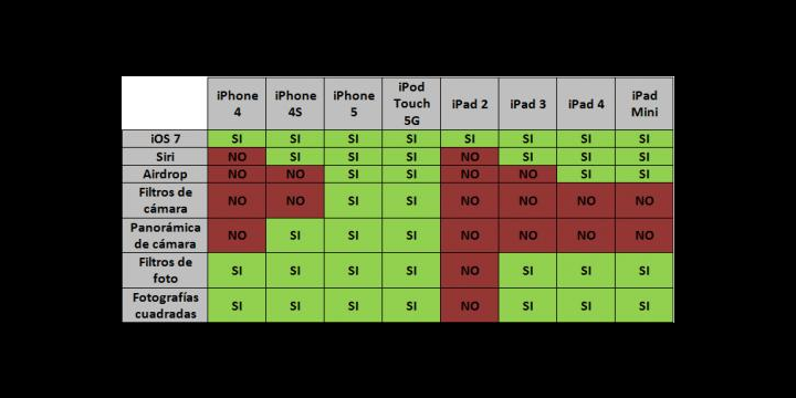 Lógicamente en cada uno de los dispositivos hay cosas que funcionarán tales como funciones de cámara, Siri, etc. Te dejamos una tabla con datos útiles.