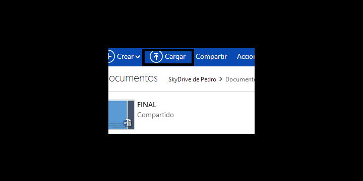 Vamos a la página de SkyDrive y en la parte superior tenemos una opción llamada Cargar que nos permite subir archivos desde nuestro equipo.
