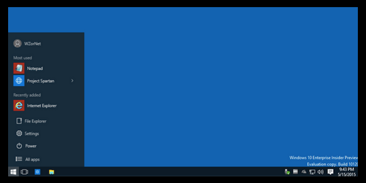 En la Technical Preview de Windows 10 vimos un menú con modificaciones en cuanto al diseño y más accesos directos, es decir, con un panel para aplicaciones animadas. Pero de repente hemos visto en un tweet del usuario WZor que la vuelta al menú clásico con Windows 10 podría ser una realidad, no hay más que ver las imágenes... y si nos fijamos en el pie del escritorio leemos "Windows 10 Enterprise Insider Preview".